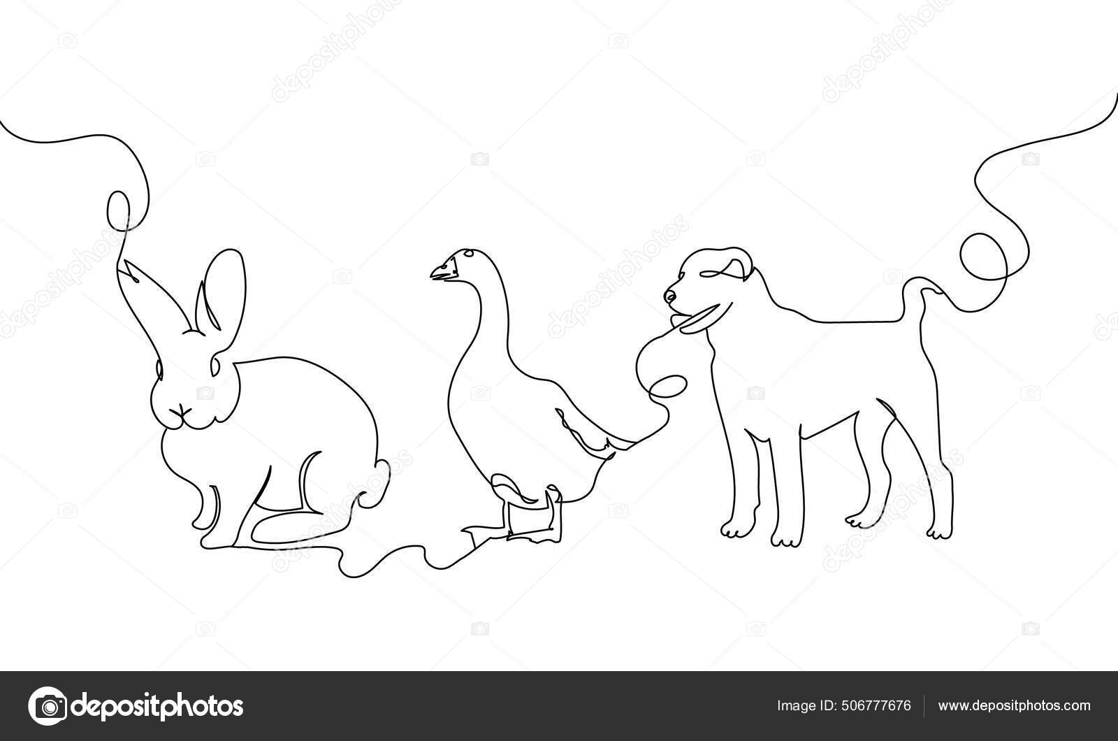 Domestic Animals One Line Set Continuous Line Drawing Of Goose Dog Rabbit Hare Stock Vector Image By C Sahs 506777676